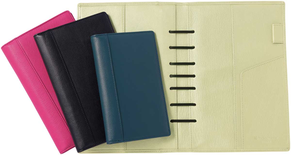 ラメコーティングがアクセントな牛革製バインダー。ポケット、コンパクト、クラシック3サイズご用意しました。
