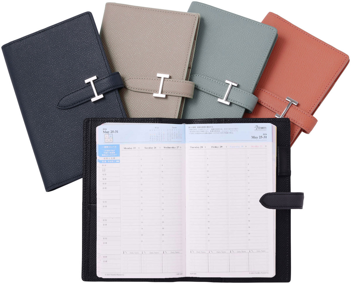 「7つの習慣」の提唱する、ウィークリーによる時間管理が実践できるタイプです。バーチカルタイプとレフト式タイプがあります。 サイズはA5とB6の2種類 |
