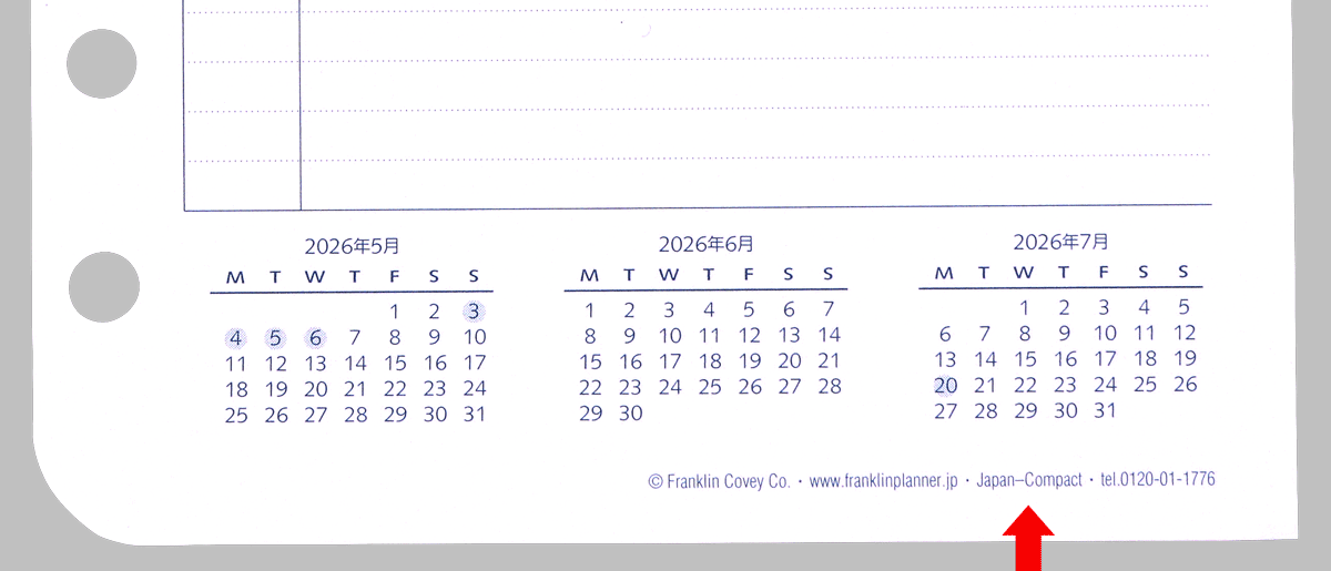 ご使用のプランナーのサイズは、リフィルやフォームページ下の表記でご確認いただけます。
